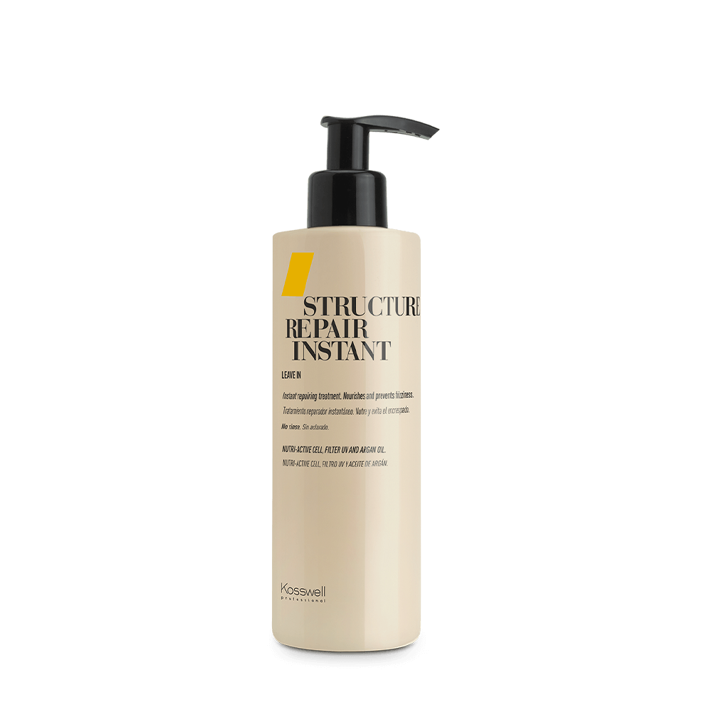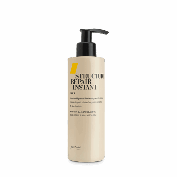 Structure Repair Instant de Kosswell Professional es un acondicionador leave-in diseñado para restaurar la fibra capilar desde la primera aplicación. Su fórmula avanzada con agentes reparadores e hidratantes actúa directamente sobre el cabello dañado, fortaleciéndolo y mejorando su elasticidad sin necesidad de aclarado.