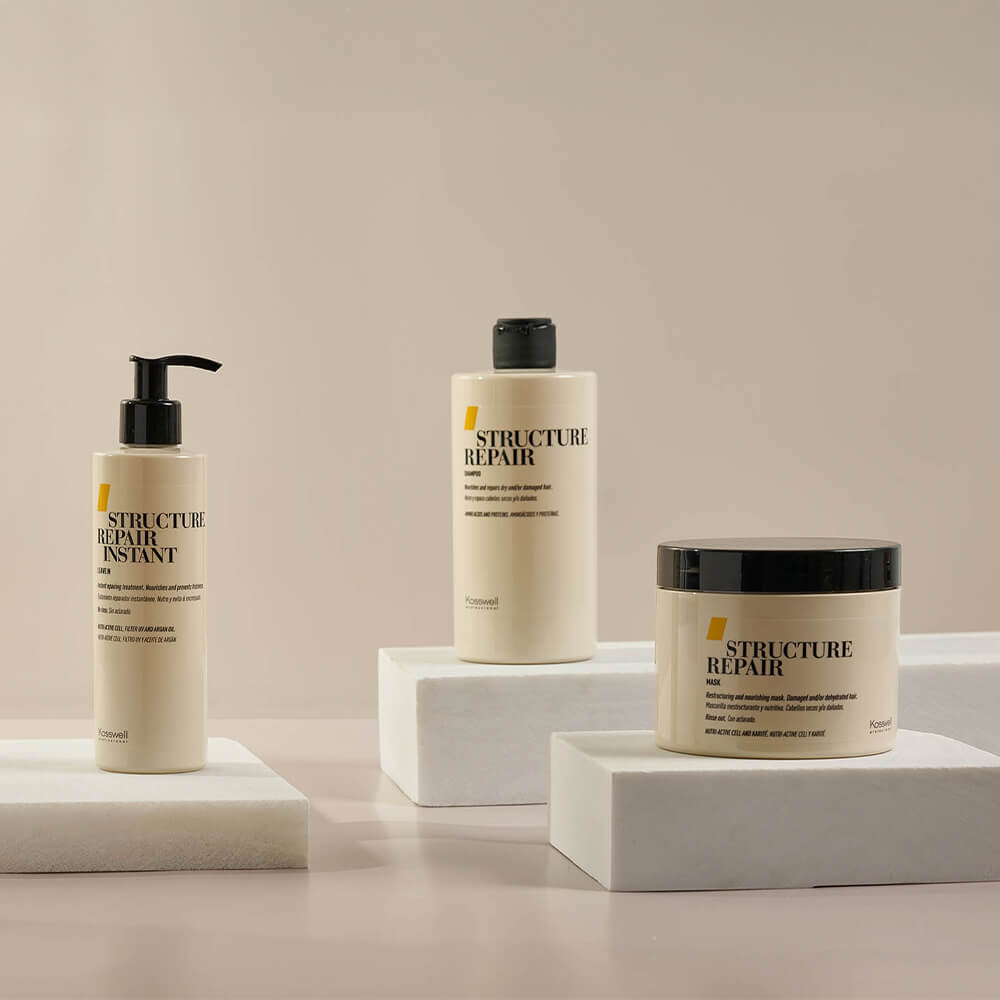 Structure Repair Mask de Kosswell Professional es un tratamiento de reparación intensiva diseñado para recuperar la salud y vitalidad del cabello más dañado. Indicada especialmente para cabellos secos, debilitados o sometidos a procesos técnicos (coloraciones, decoloraciones, alisados), su fórmula avanzada penetra en la fibra capilar, reforzándola desde el interior y devolviendo resistencia y elasticidad.