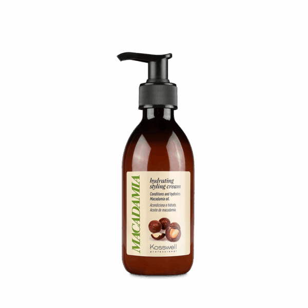 Macadamia Styling Cream de Kosswell Professional es una crema de peinado nutritiva enriquecida con aceite de macadamia, fuente natural de ácidos grasos y antioxidantes. Proporciona hidratación intensa, mejora la elasticidad de la fibra capilar y ayuda a proteger el cabello frente a agentes externos.