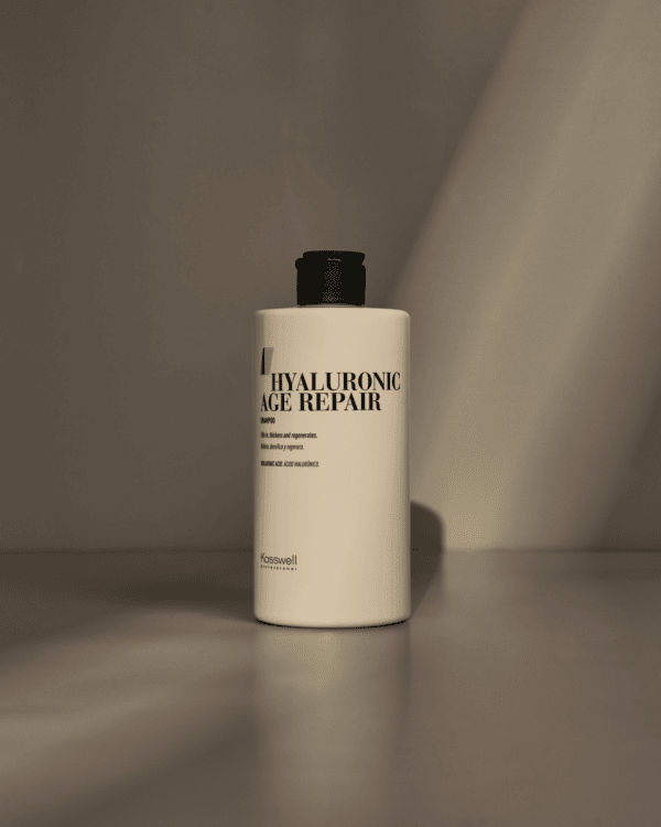 HYALURONIC AGE REPAIR: Una novedad de 2024 que ha revolucionado el mercado. Este champú, formulado con pH ácido y ácido hialurónico, rellena la fibra capilar, aportando volumen y vitalidad a los cabellos más maduros o debilitados.