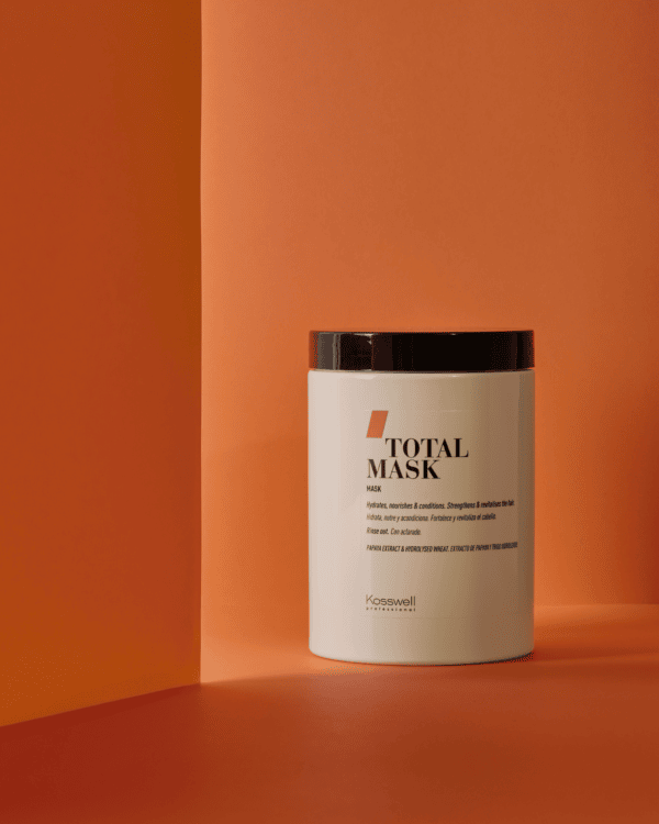 TOTAL MASK: La mascarilla ultra-acondicionadora más potente, diseñada para fortalecer y revitalizar la fibra capilar, dejando el cabello suave, brillante y renovado.